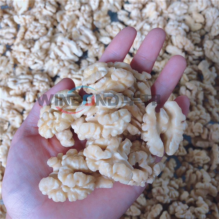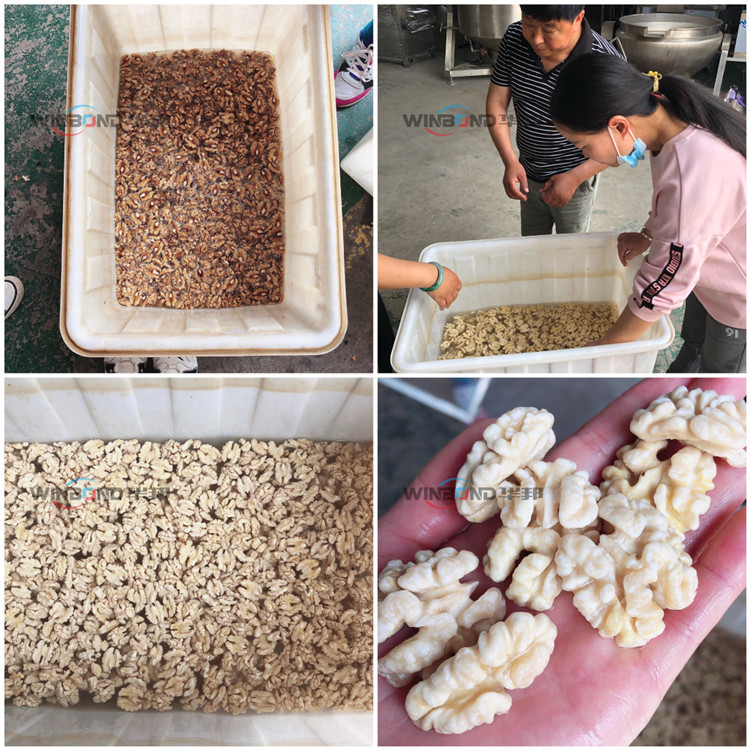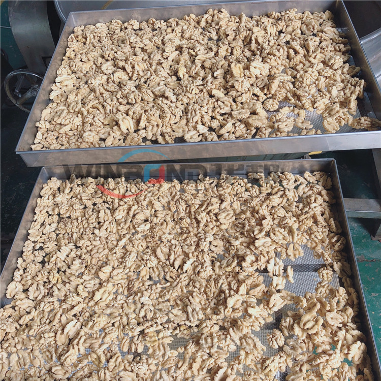 核桃仁去皮清洗機(jī)的主要作用是利用高壓水流沖洗掉核桃仁表面的皮衣,因為核桃仁表皮發(fā)澀,口感不好,