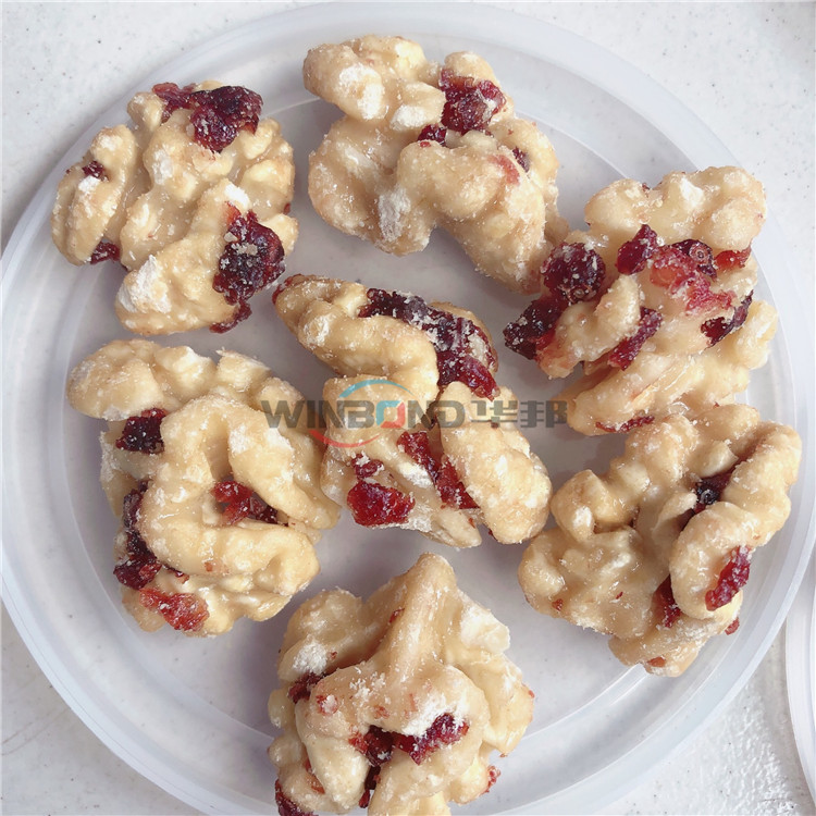 2.滾筒脫皮:采用循環(huán)水泵、蒸汽加熱系統(tǒng)可以快速、洗掉核桃仁表面的泥垢、浮皮。清洗后進入清水噴淋區(qū),然后進入振動篩,由振動篩將大部分水珠震動掉后進入風(fēng)干線或烘干機,風(fēng)干或烘干完畢后進入下一道工序。生產(chǎn)線可實現(xiàn)變頻調(diào)速、自動控溫且節(jié)水。