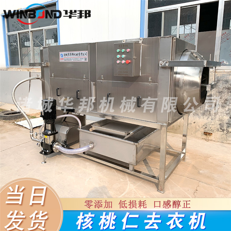華邦核桃仁去皮機/核桃仁去衣機,專門針對核桃仁發苦發澀薄皮去除,去皮率高達98%以上,設備采用滾筒設計,占地面積小,產量大,小型去皮機60kg/小時,中型去皮機100kg/小時,大型150kg/小時型號齊全,核桃仁去皮流水線日產1-20噸,支持加工定制,滾筒式設計,大大減小了核桃仁的破損率。