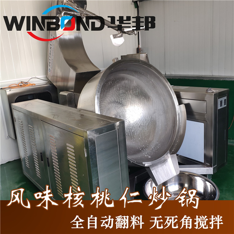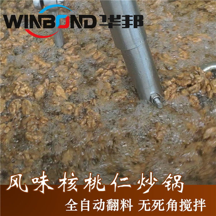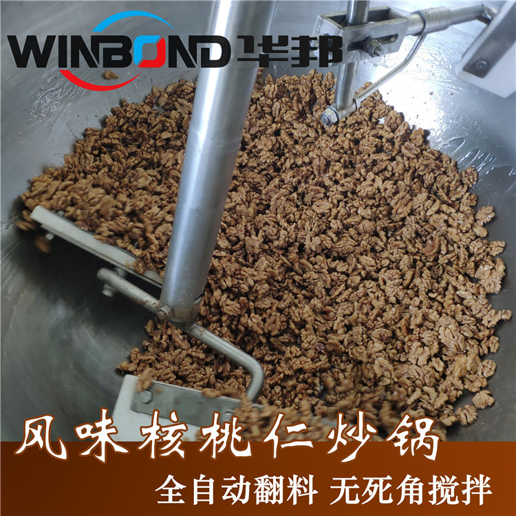 為了能夠使風(fēng)味核桃口味更佳,華邦機(jī)械全自動炒鍋受熱均勻,攪拌均勻:
