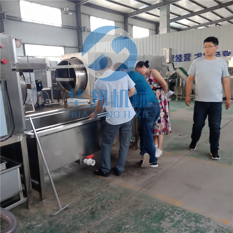 由提升機或人工將核桃仁運輸到去皮機內,全程1-2人操作即可,生產效率是人工的幾十倍,大大的節約了用工。