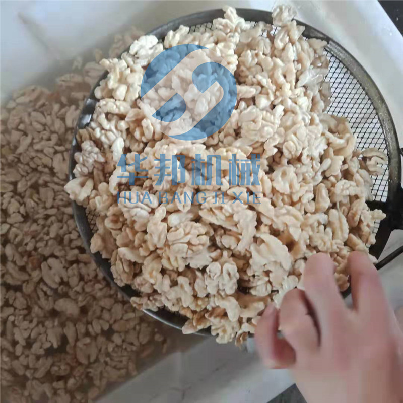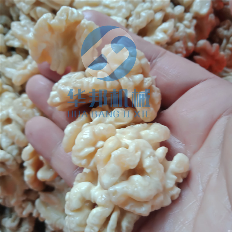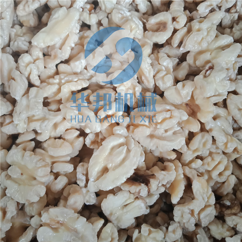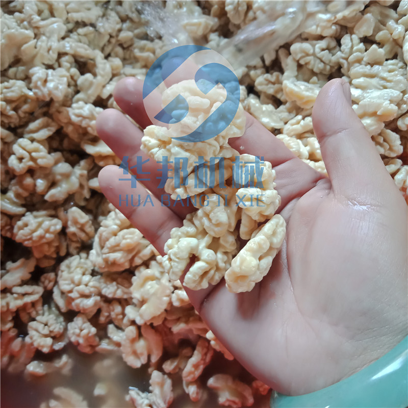 由提升機或人工將核桃仁運輸到去皮機內,全程1-2人操作即可,生產效率是人工的幾十倍,大大的節約了用工。