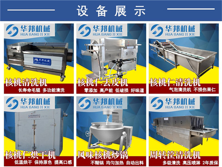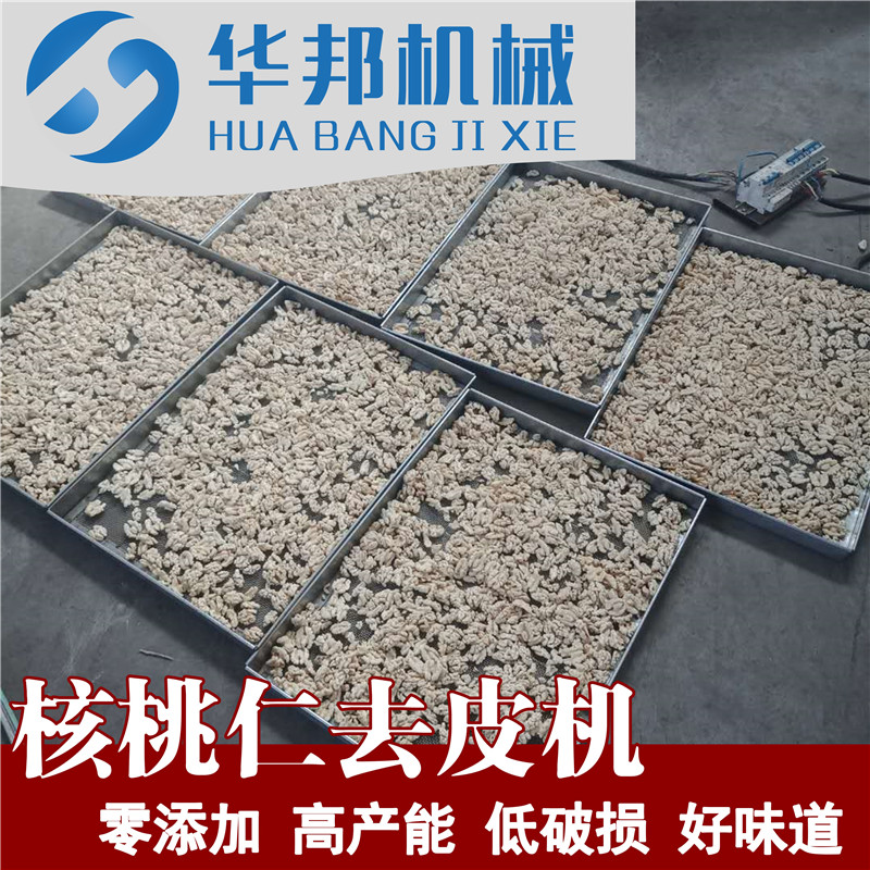來華邦機械考察一下吧,純物理核桃仁去皮機,去皮率98%,果仁完整度高,解決您核桃仁去皮難的煩惱。