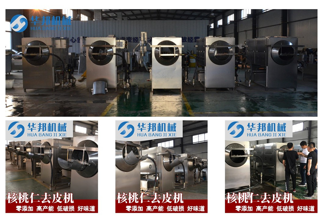 華邦機械,自主生產研發核桃仁去皮機設備,我們有專業的技術人員研發,采用純物理技術經過幾年的實驗設備很成熟,適合各個品種干核桃仁的去皮,成功將傳統技術工業化,成功研發了各種大型核桃仁物理去皮生產線。