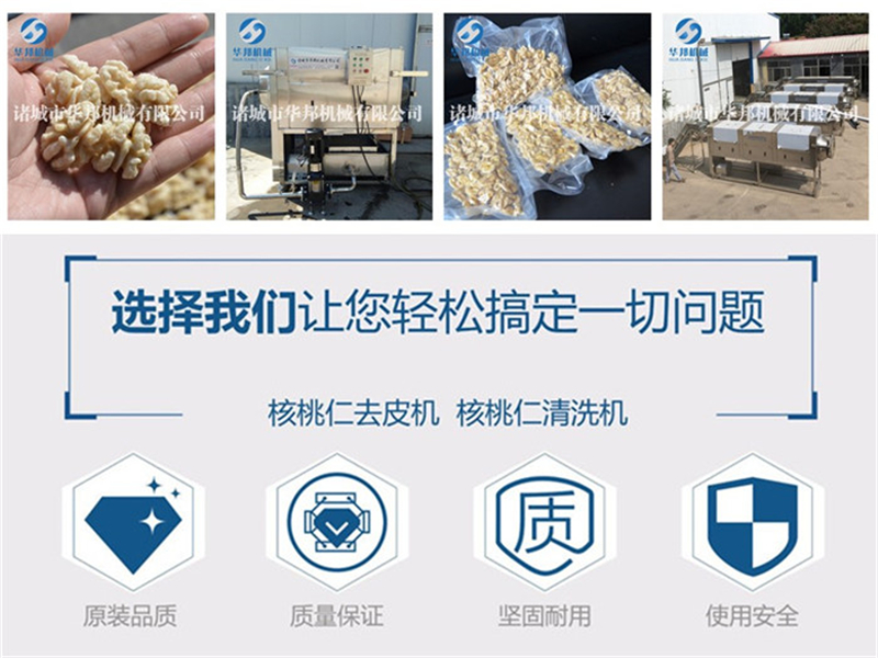 來(lái)華邦機(jī)械考察一下吧,純物理核桃仁去皮機(jī),去皮率98%,果仁無(wú)破碎,解決您所有的煩惱。
